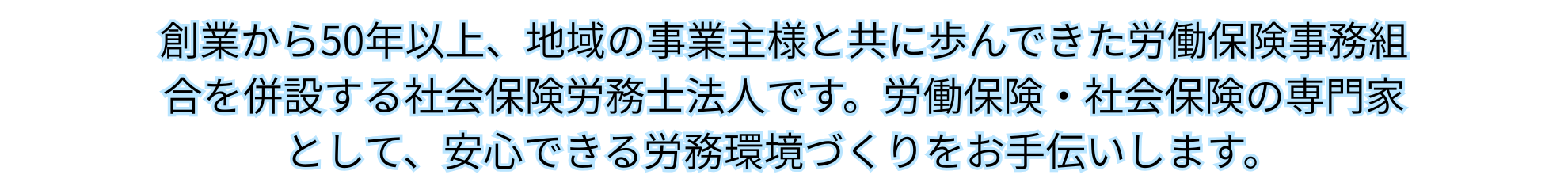 創業から50年以上、地域の事業主様と共に歩んできた労働保険事務組合を併設する社会保険労務士法人です。労働保険・社会保険の専門家として、安心できる労務環境づくりをお手伝いします。